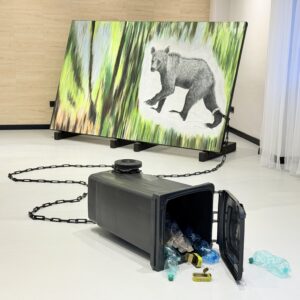 The exhibition Bin Bear Series – as the name itself suggests (“bin” – trash can, “bear” – bear) – is about animals, but not only about them. It is also about us, about people, about nature, its protection, and our attitude towards it. The project was created in collaboration between Janka Kolibri Podkrivacká and photographer and filmmaker Karol Kaliský together with his son Karol Kaliský Jr.