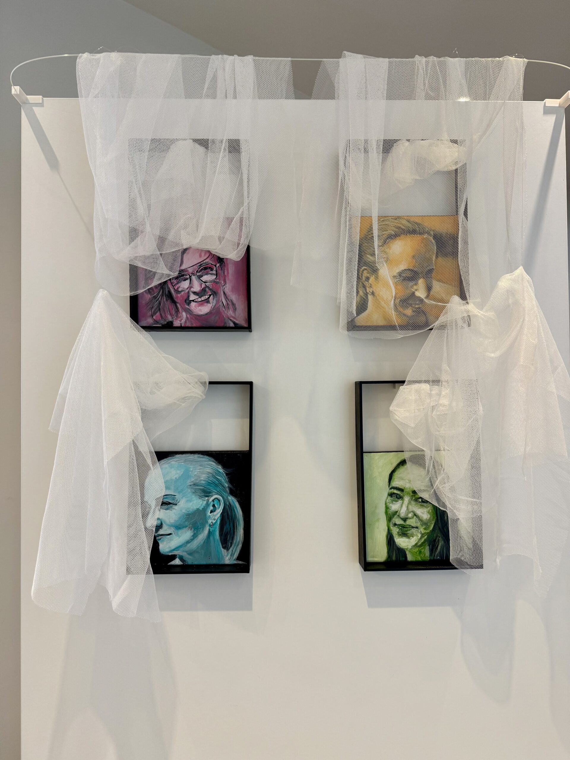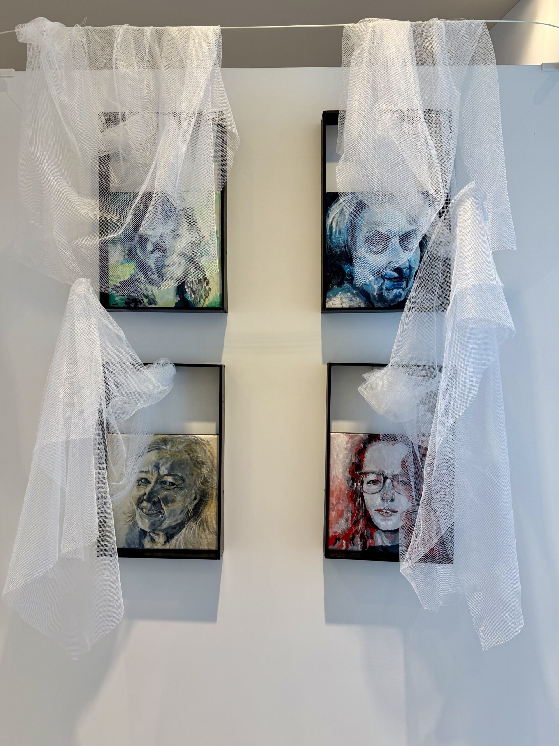 16 rough portraits installed with veil. It covers not just woman’s face, but also the mindset of both her and the viewer standing in fron of her.