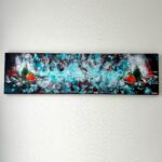 Incandescently Cool Nature, Number 7 and Number 9 have a special effect when displayed in the dark. The “white” phosphorescent lines emit light, creating a subtle glow. This effect is visible to the human eye both in darkness and under light, drawing the viewer deeper into the painting.