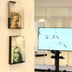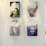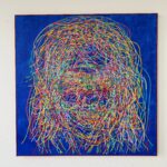 The third part, We are beautiful, 2024 is 150×150 cm acrylic painting merging all sixteen women into the one. By tracing the significant color coresponding with the small rough portraits the viewer can recognize the distinct woman as well as a new face created by all intersections representing embroidery. The lines intersect and merge into one another, revealing parts of the face that are more or less prominent, yet together forming the entire visage