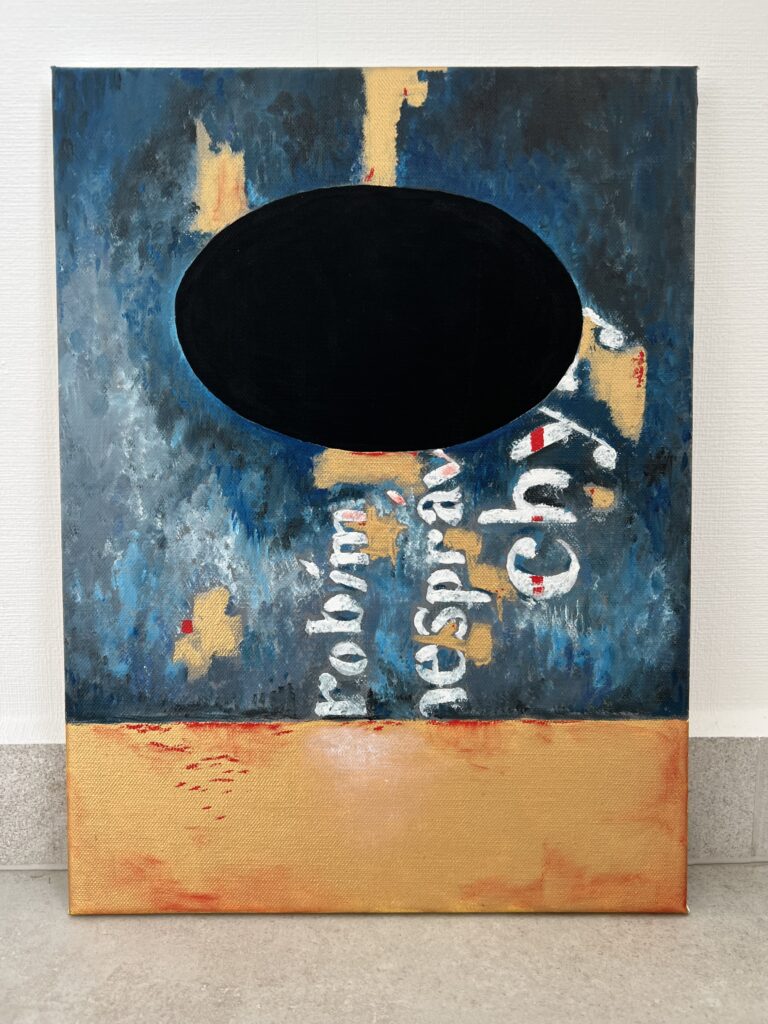 When Russia attacked Ukraine in 2022 I asked myself if what I know about Ukraine was not influenced by a russian propaganda. To answer this question which was torturing me I decided not to watch news immediately after the russian aggresion until I finish this painting. I captured what I knew about the history of Ukraine since people of this state decided to belong to the western part of Europe with its democratic values. The format I chose was a comics style with not nice pictures because neither the war is nice. First picture tells about the people’s decision to be part of the western democracy, than russian trolls started to create fake news and riled people. Maidan / Euromaidan / Євромайдан took place on the main square, but trolls made intensive propaganda and started to create fake news about satanistic rituals where innocent russian children living in Ukraine were murdered. Putin decided to attacked and swallowed Ukraine. Ukrainians rose with whatever they had to protect their land and declaired the will to be the part of Europe because it is their choise. Fasists marks appeared on military vehicles, tanks or planes which bombed the country. Sad memento was also anexion of Krymia. Yes, war is not a fake because the war leads to thousands of dead souls on each side.