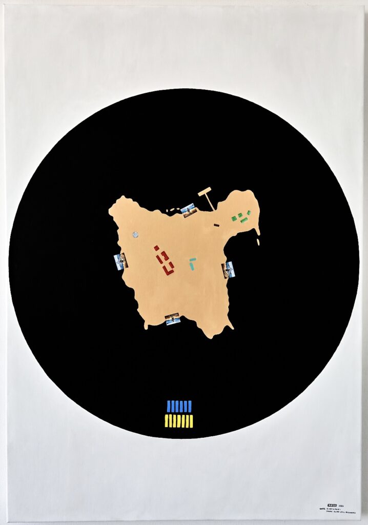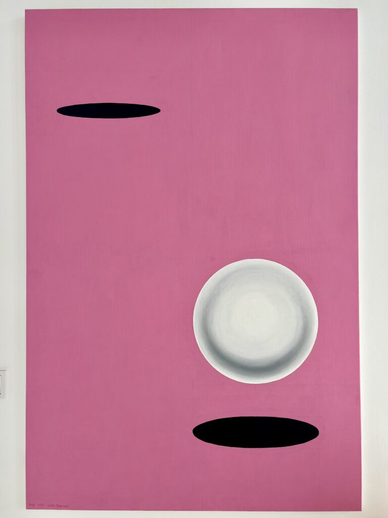 If you watch this painting for a while you will see the ball levitate over the black hole while your attention will start to be occupied by the secont narrower one in the distance. This is my play in my world. It seems to be simple, but if you give a chance to observe it, everything start to have it’s own life.