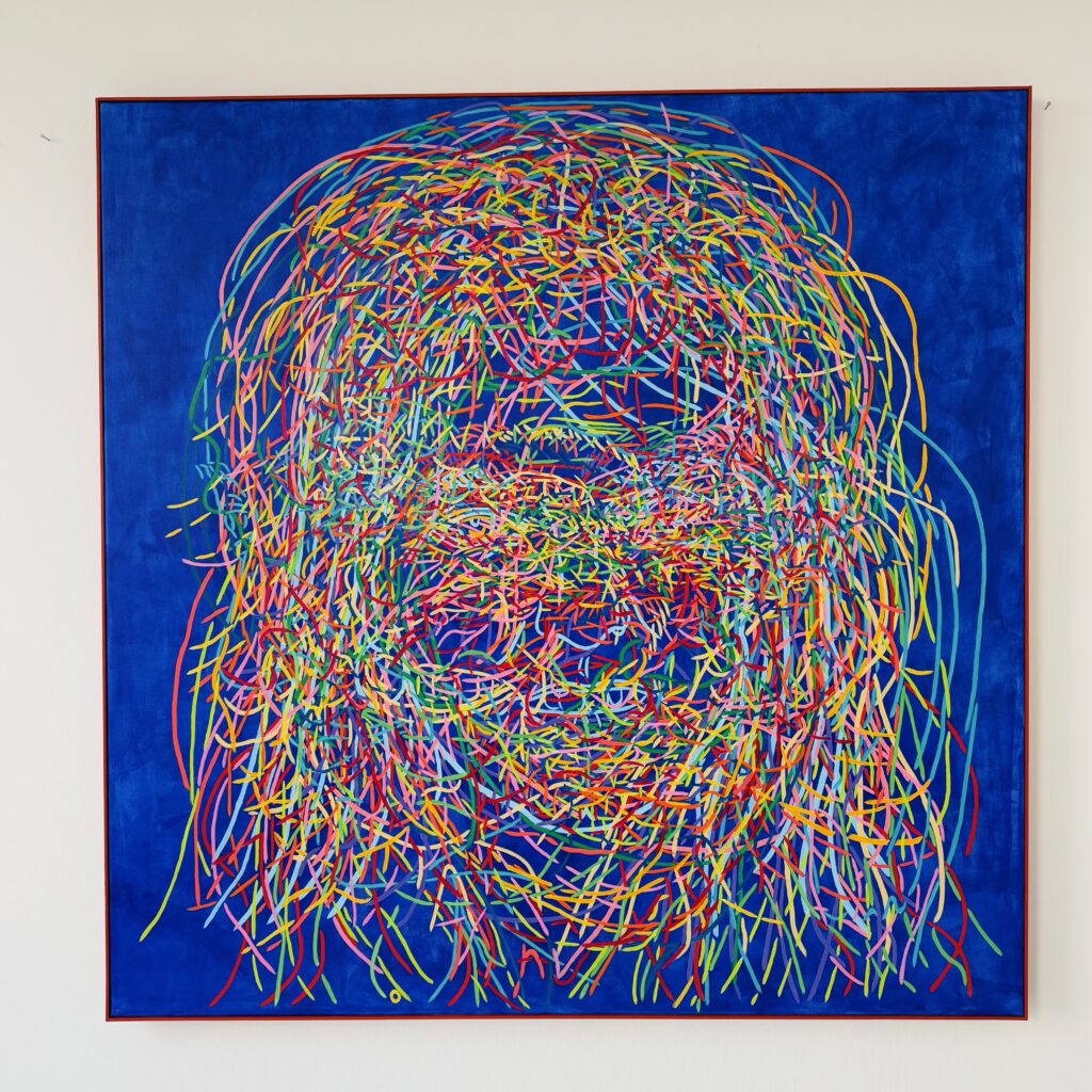 Each of the 16 women is creating one. You can recognize each face by following the colors. We Are Beautiful, 2024 (the third part of the Beautiful Women Series) is about women who don’t (or didn’t) see themselves as beautiful, but they truly are. The lines intersect and merge into one another, revealing parts of the face that are more or less prominent, yet together forming the entire visage.