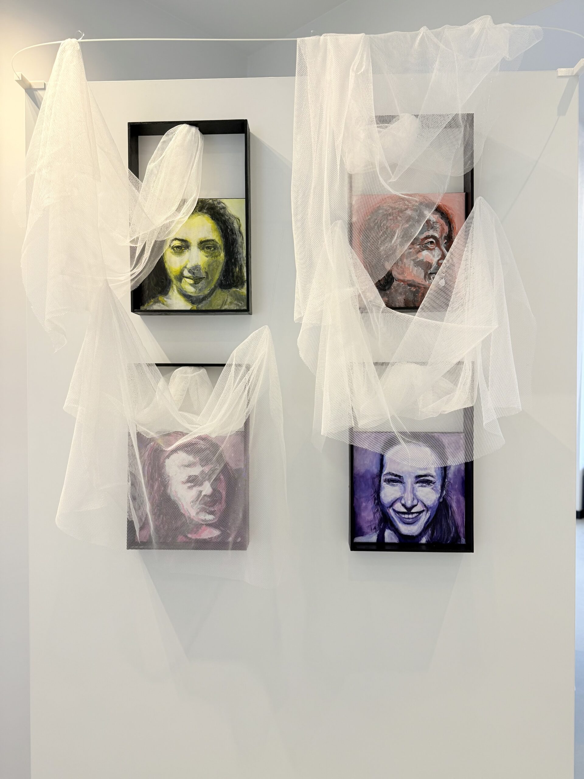 16 rough portraits installed with veil. It covers not just woman’s face, but also the mindset of both her and the viewer standing in fron of her.